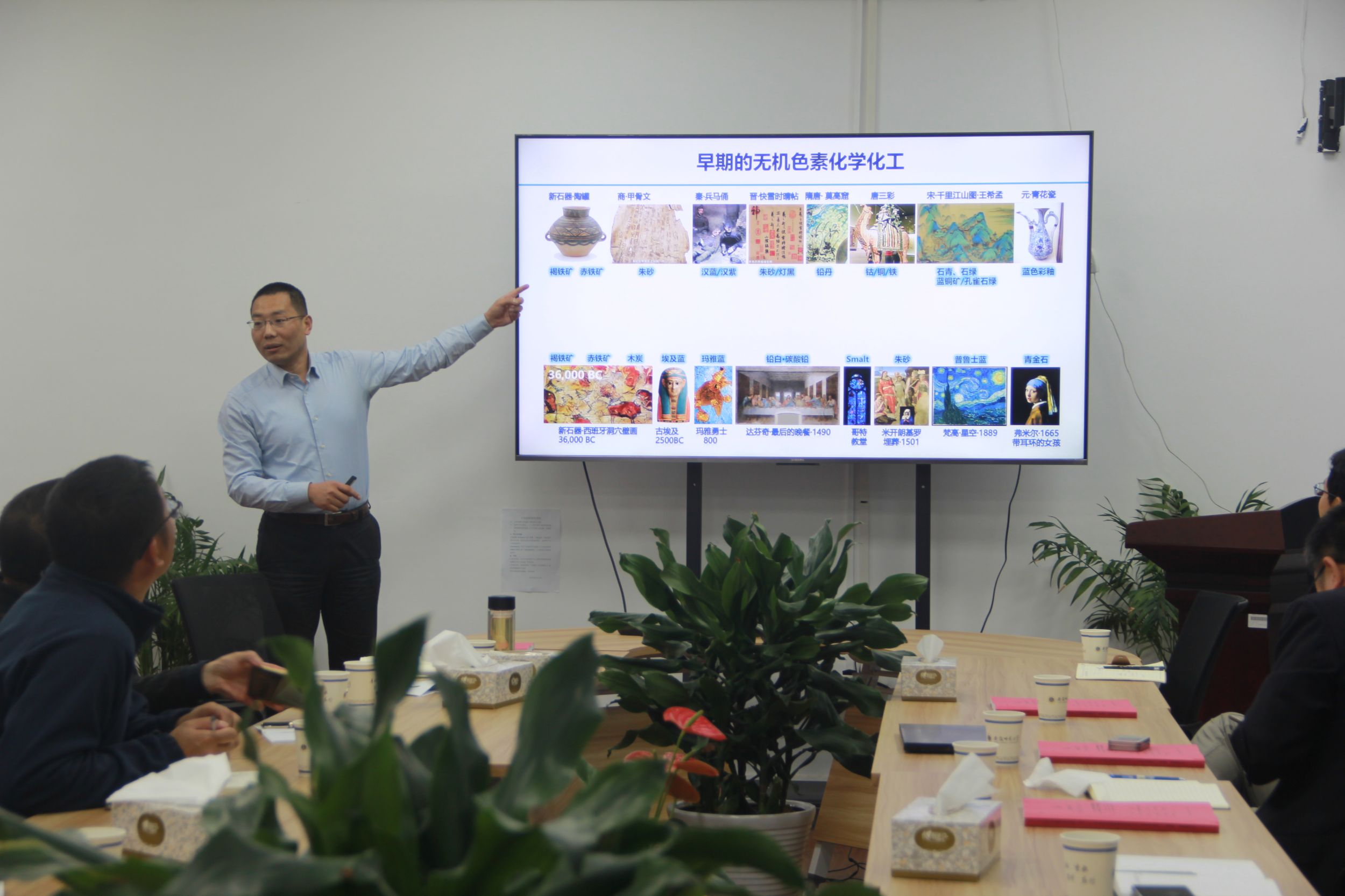 杨有军教授作了题为“红外咕吨染料分子工程”的学术报告。杨有军教授首先详细介绍了早期的无机色素化学化工。然后分析了红外染料能级调控、性能强化和功能耦合中存在关键科学问题如母体缺乏、机制薄弱、制备困难等,并提出从源头创新、功能突破以及性能提升的应对策略。最后,杨有军教授进行了总结,应围绕咕吨染料母核,开展系统性分子工程研究,解决能级高效调控和性能强化的科学问题,为800-1200nm区间前沿应用研究提供高性能红外荧光染料。会后,杨有军教授与参会师生展开激烈学术讨论,并回答了参会师生提出的问题。