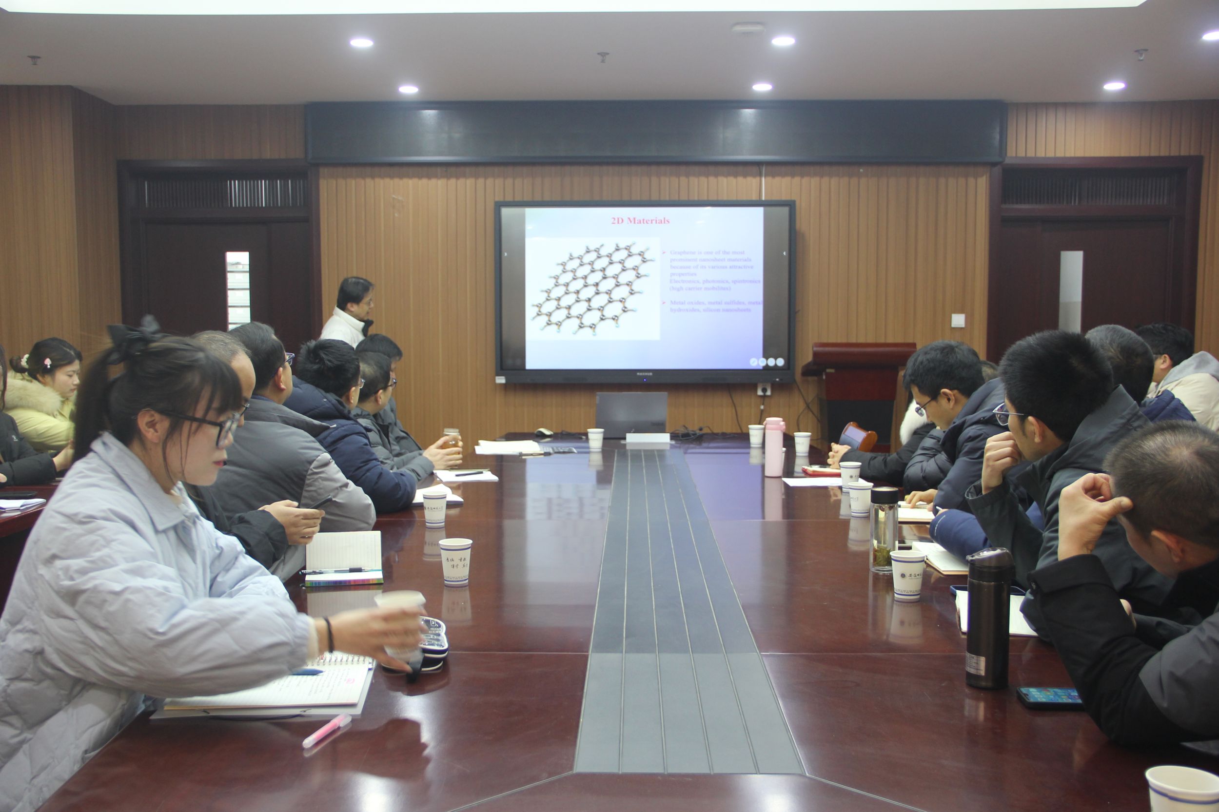 黄维扬教授作了题为“Recent Advances of 2D Metal Complex Nanosheets”的学术报告。黄维扬教授首先对二维材料种类及制备方法进行了简单介绍。随后,介绍了研究团队近年来在金属络合物二维材料的设计与制备取得研究成果以及它们在光催化、电催化领域实际应用性能。最后,黄教授介绍了金属络合物二维材料在锌离子电池方面的最新成果。会后,黄维扬教授与参会师生展开了一系列学术讨论,并回答了与会师生提出的问题。