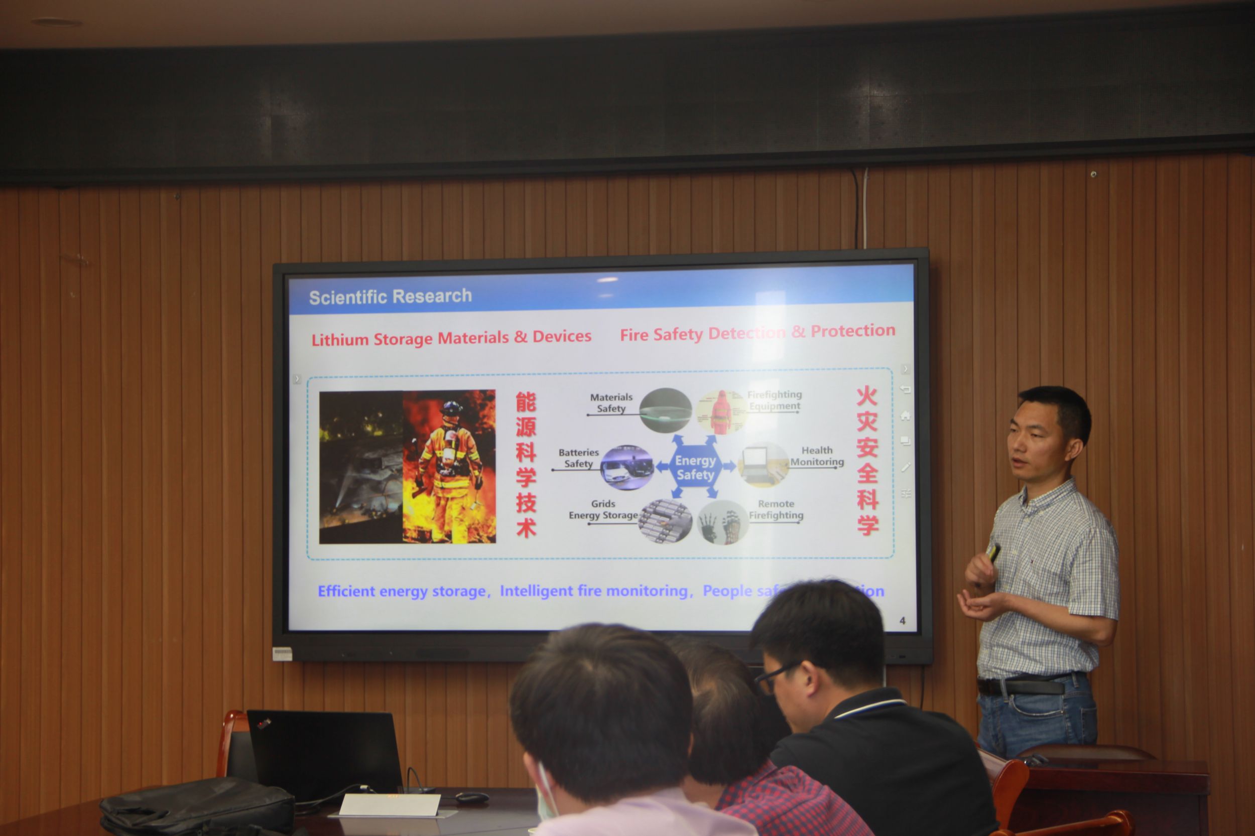 朱纪欣教授作了题为“锂电池高效储能与火灾安全”的学术报告。朱教授首先介绍了金属无机氧化物复合材料、金属有机络合物材料、铝金属轻薄高韧多孔集流体等多种与锂电池储能相关的材料及其特性。随后,朱教授介绍了用于火灾安全预警的温度监控柔性安全电子器件,以及电池火灾远程操控的柔性安全电子器件。最后,朱纪欣教授从能源储存与热安全防护问题入手,介绍了储能材料的最新进展以及电池安全的预警策略和操控机制。会后,朱纪欣教授与参会师生展开了一系列学术讨论,并回答了与会师生提出的问题。