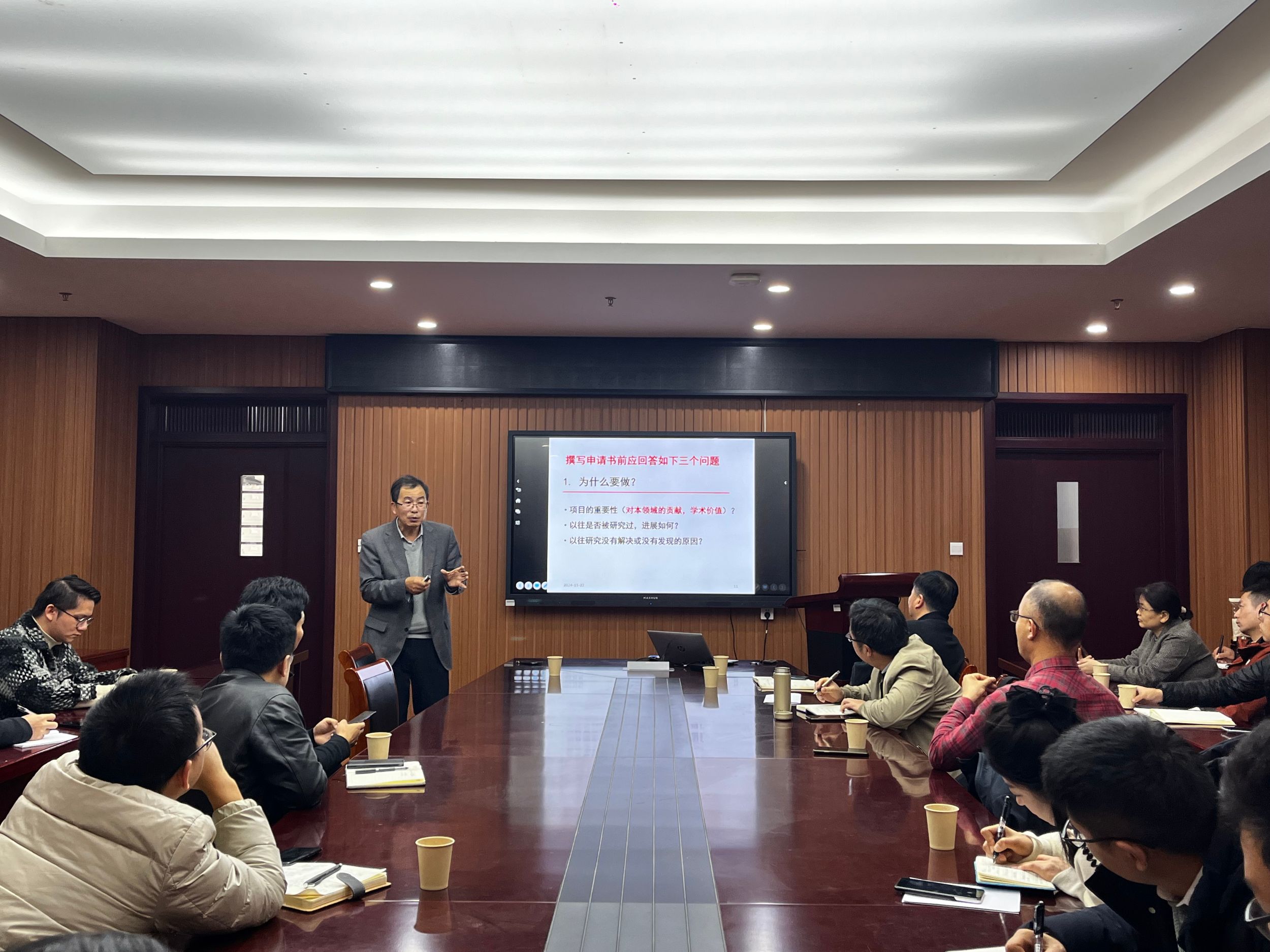 罗孟飞教授围绕《如何写出一本优质的国家自然科学基金申请书》主题展开报告。罗教授从申请书的摘要、撰写申请书前应回答的三个问题等方面给出了具体指导意见,提醒教师们在撰写过程中注意语言的精炼和准确以及关键问题的整合。会后,罗教授与参会教师就基金申报书撰写过程中遇到的实际问题进行了交流。本次报告会的成功举办,让与会教师进一步明确了国家自然科学基金申报的关键环节与工作要点,也为今后的申报工作提供了更好的助力。