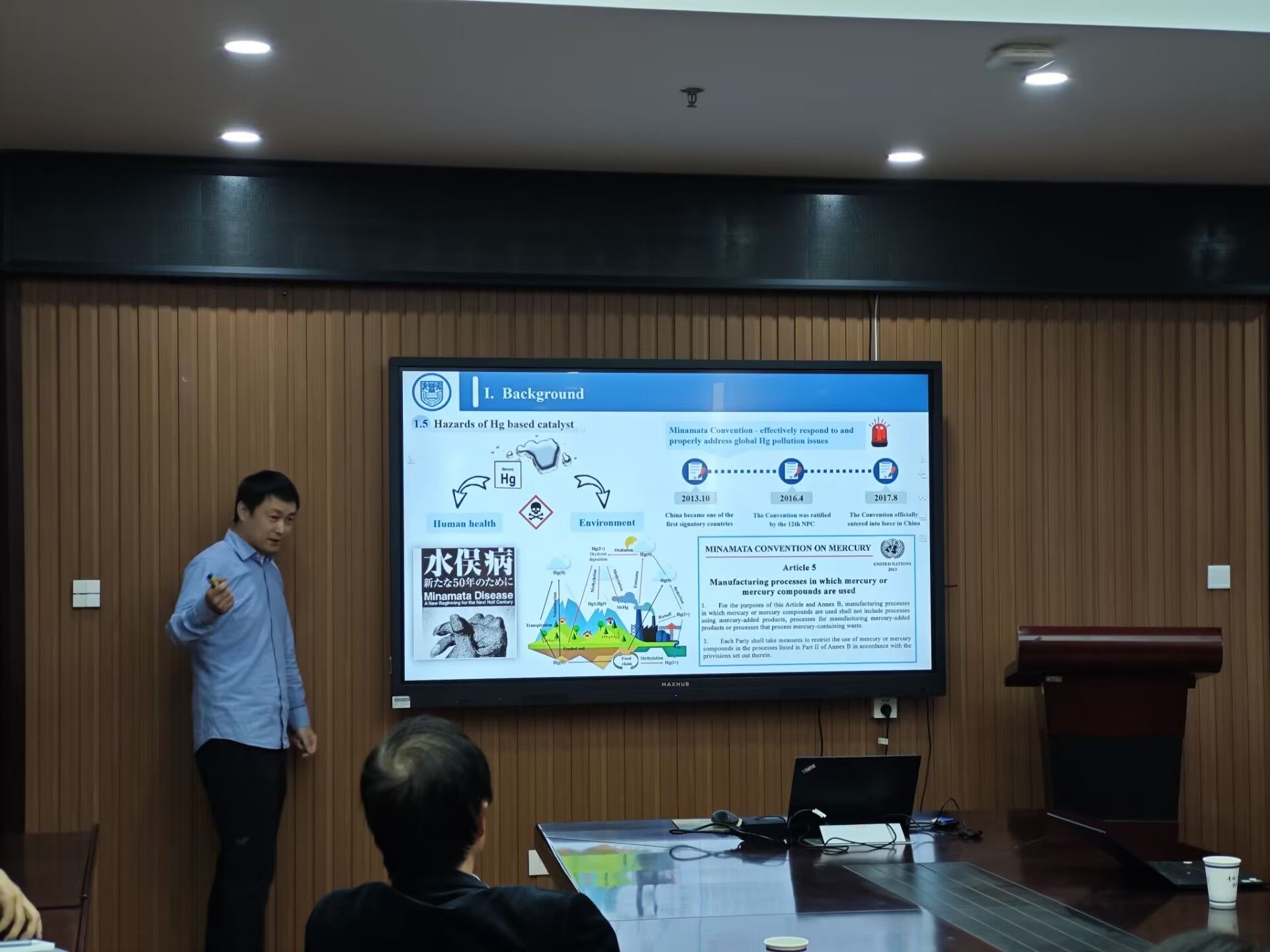 王川教授作了题为“乙炔氢氯化超低含量贵金属催化剂的研究”的学术报告。王教授从氢能、催化剂的合成方法、新材料和绿色化工等四个方面展开了报告。在氢能方面的研究有绿氢制绿醇绿氧、绿醇绿氨分解产绿氢和氢燃料电池。在催化剂的合成方法中可分为新型连续流技术和AI人工智能技术。新材料方面的研究分为合成超分子组装体新型材料和合成绿色纳米多孔材料。绿色化工的研究方向为乙炔氢氯化无汞催化剂的研发和生物质催化转化为高附加值化学品,最后王教授对本次报告作了小结。会后,王教授与与会师生展开了一系列学术讨论,并回答了与会师生提出的问题。