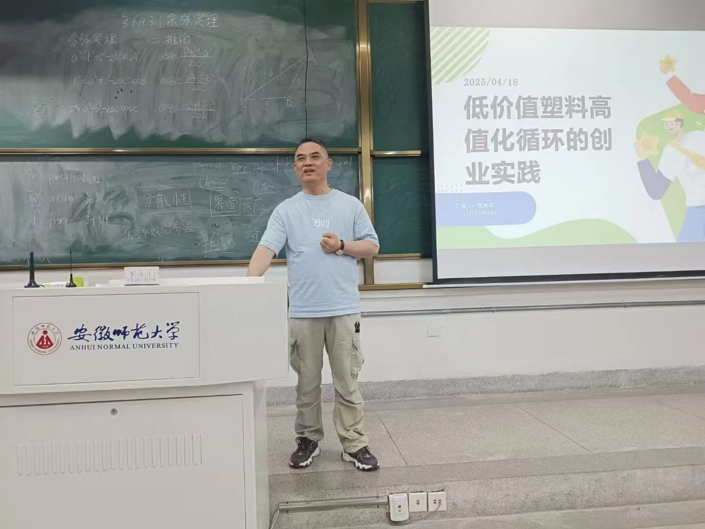 2025年4月18日下午,芜湖亚太公司董事长夏则荣先生受邀做客花津校区行知楼7号楼201教室,带来了一场题为“低值塑料高值化循环的创业实践”的专题讲座。讲座由包子漫画
