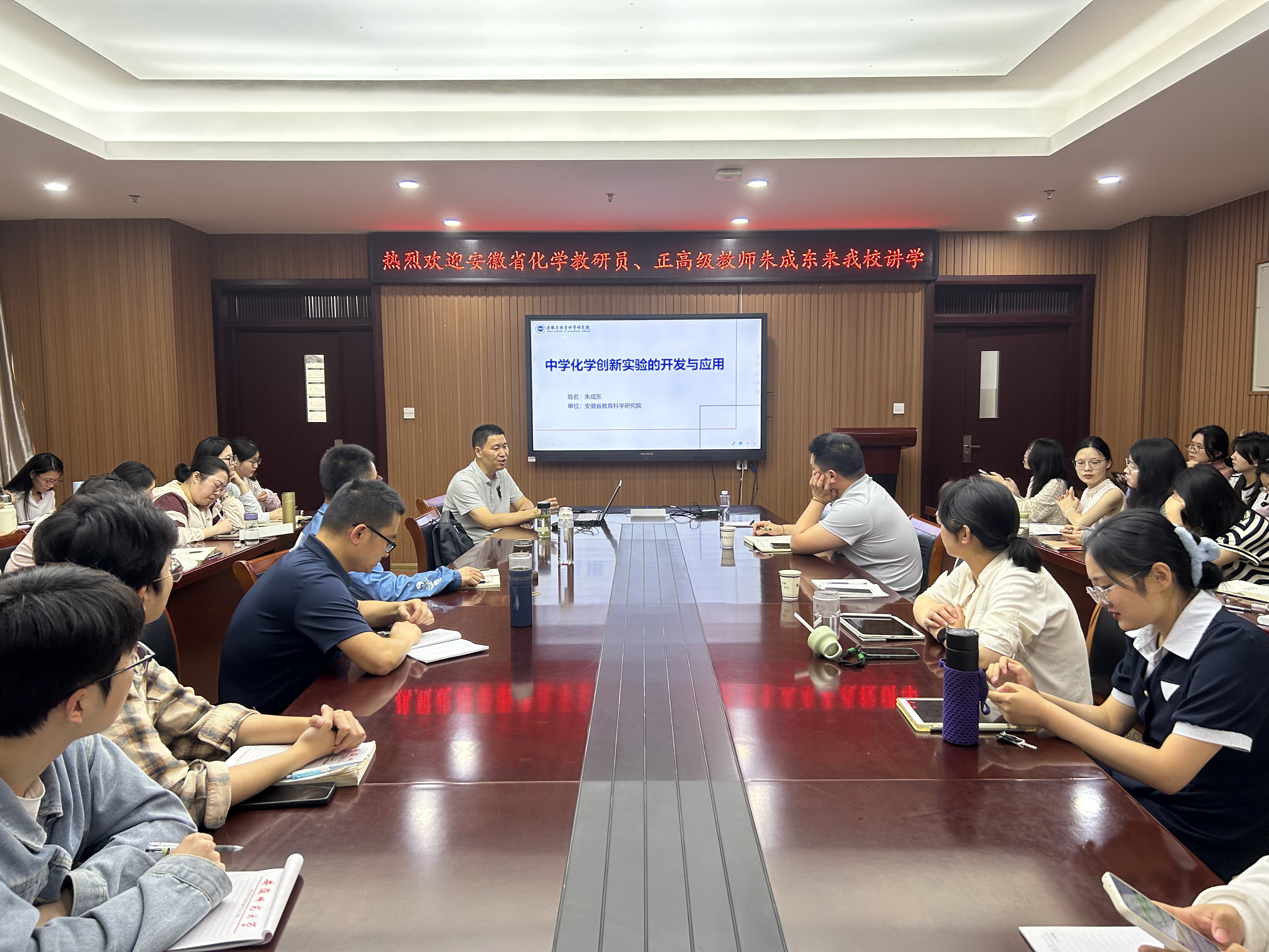 杨佳)5月28日下午,安徽省教育科学研究院化学教研员、高级教师朱成东应邀来我校讲学,在花津校区礼勤楼702会议室作题为《化学创新实验的开发与应用》的专题报告。本次学术活动由包子漫画