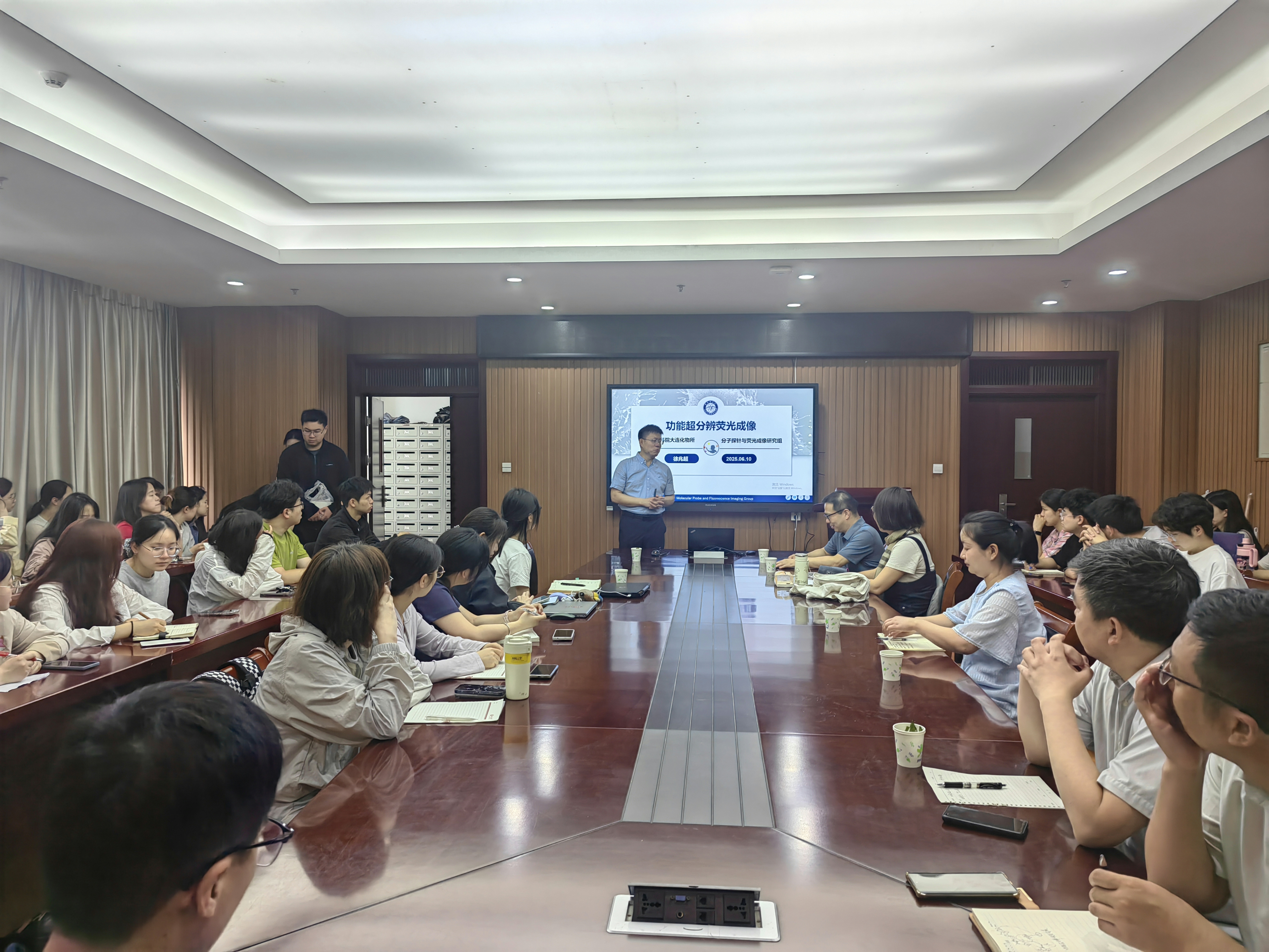 徐兆超研究员作了题为“功能超分辨荧光成像”的学术报告。徐研究员报告聚焦于分子探针与超分辨成像技术,通过对荧光探针选择性的研究,以及突破时空分辨极限,助力识别和解析细胞网络。徐研究员团队借助超分辨成像发展历程中结构超分辨与功能超分辨的技术演进,实现对活细胞动态长时超分辨成像,为复杂体系结构解析提供支撑。徐研究员还深入探讨超分辨成像引发的复杂体系结构解析革命,涵盖生命科学、物质科学、信息科学、纳米制造等多领域应用。最后,徐研究员展望了超分辨荧光成像在疾病诊疗和药物发现等方面的应用,强调建立5D超分辨医食影像组、结合图形识别与人工智能的革新意义。会后,徐兆超研究员与在场师生围绕报告内容展开热烈讨论,并就超分辨成像在生命健康研究中的深度应用、荧光探针性能优化等问题进行了深入交流。