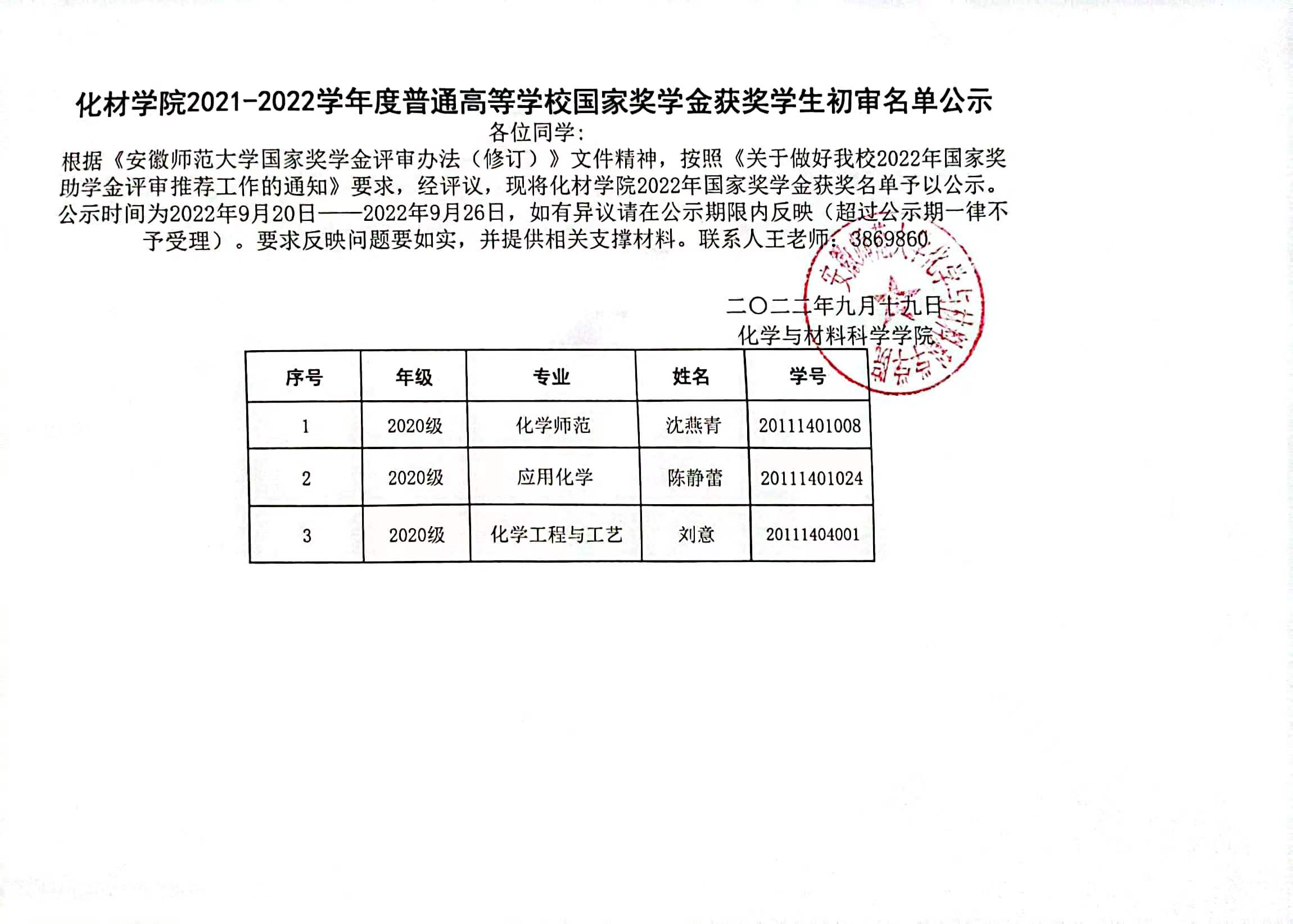 经学院学院党政联席会议集体研究评定,我院2022年本科生国家奖学金、国家励志奖学金拟推荐名单如下: