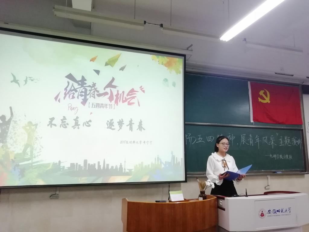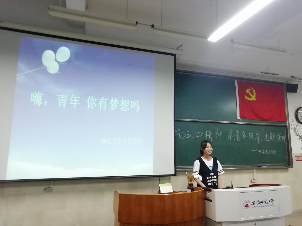 此次实践活动以个人为单位,参赛学院以演讲方式展示对五四精神的理解,对当下的总结,对未来的展望。活动伊始,各参赛同学便积极踊跃,他们或用激昂文字、铿锵的语调引领众人的思绪,回想百年前青年用实践探求救国图存的道路;他们的演讲或伴随背景音乐的环绕和演示文稿的展示,使人感同身受,重温五四精神的延续。一位位演讲者从不同的角度,有的是他们的亲身体会,有的是从书卷中收获的金玉良言,但都殊途同归,无不都是以历史为镜,以现今的实际为基础,通过对自己的反思,通过自身的不断努力奋斗,从而展现青春的绚丽华章。