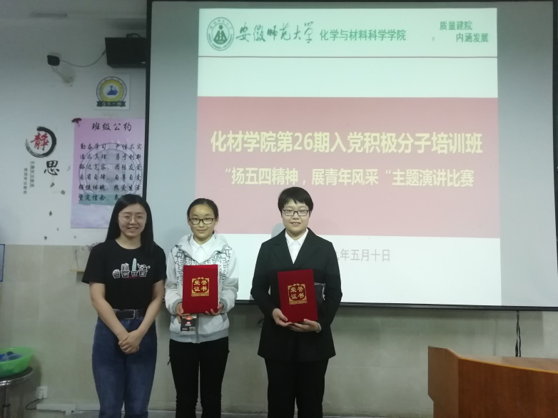 分党校第26期入党积极分子培训班于5月10日晚19:00在行知楼2010308教室开展“扬五四精神,展青春风采”主题演讲比赛,17级、18级各专业辅导员老师应邀担任此次比赛评委。