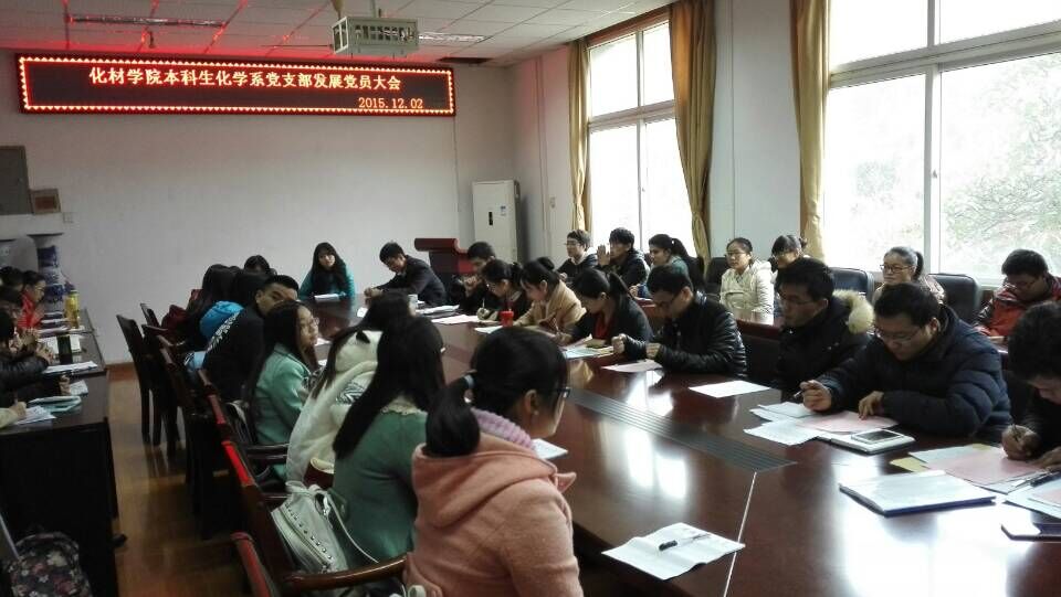 本科生化学系党支部发展党员大会在院大会议室召开。支部6名正式党员、14名预备党员及22名党员拟发展对象参加会议,支部大会由化学系学生党支部书记蒋建伟老师主持。