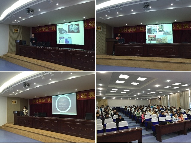 姚陈志学长首先为大家演讲,他用生动幽默的语言给大家讲述了他的大学学习生活,向大家分享了自己如何学好四大基础化学课程的经验,鼓励学弟学妹们在学习过程中遇到困难不要害怕,只要肯花时间和精力努力钻研,就一定可以将物理化学、有机化学等一些很难的科目斩获马下。他还用精美的图片展现了中科大的美景和他所在实验室里高精尖的大型仪器,激发了大家对中科大的向往。接下来演讲的是四个人中唯一一个有过考研经历的常婷婷学姐,她通过精美时尚的PPT,向大家讲述了考研那段充实而又艰辛的时光,用实事告诉大家考研不仅需要选好学校和专业,更需要持久的毅力和坚持,鼓励学弟学妹们尽早确定自己的目标并为之奋斗。多才多艺的她还向大家展示了她在中科大丰富多彩的生活。庄美慧学姐为大家带来了她的人生信条“越努力越幸运,越幸运越努力”,给在场所有的本科生带来了颇深的感触。学姐为大家介绍了她的研究课题,让大部分还未进入实验室的低年级同学对做实验产生了强烈的好奇心。此外,她还通过参加英语学术报告的经历告诉大家英语学习的重要性。最后出场的是张红莉学姐,作为师大曾经的“十大自强之星”之一,她根据自身的学习经验,用最为朴实的话语给学弟学妹们介绍了四大基础化学课程的学习方法。她还强调了创新实验的重要性,不仅能锻炼自身的科研能力,还会是复试过程中最能展示自身的亮点,并劝诫大家要珍惜现在学校学院提供的各项创新实验的机会和平台,尽早进入导师实验室做实验,只有努力把握现在,才能遇见未来更美好的自己。