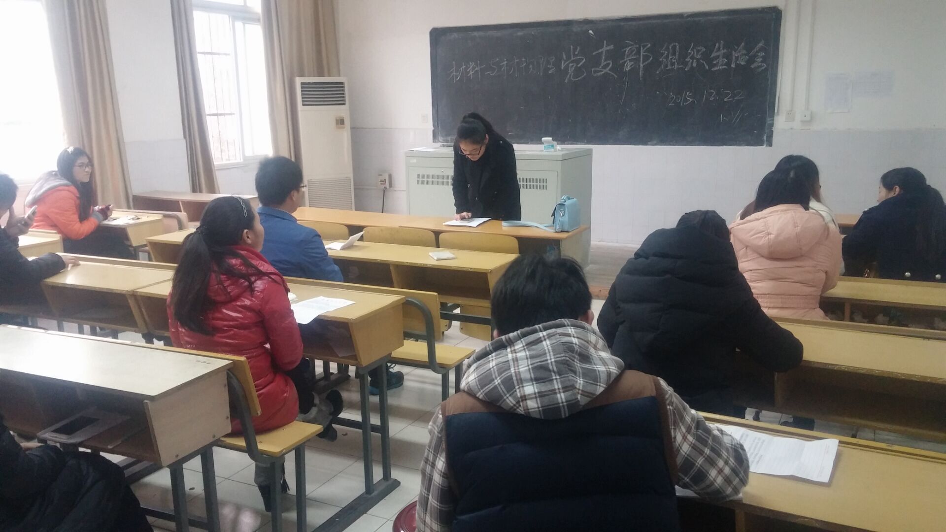 研究生材料及材料物理党支部在生化楼2327室召开民主生活会。支部13名正式党员(实到10名)、4名预备党员参加会议,支部大会由材料及材料物理党支部书记凌敏同志主持。