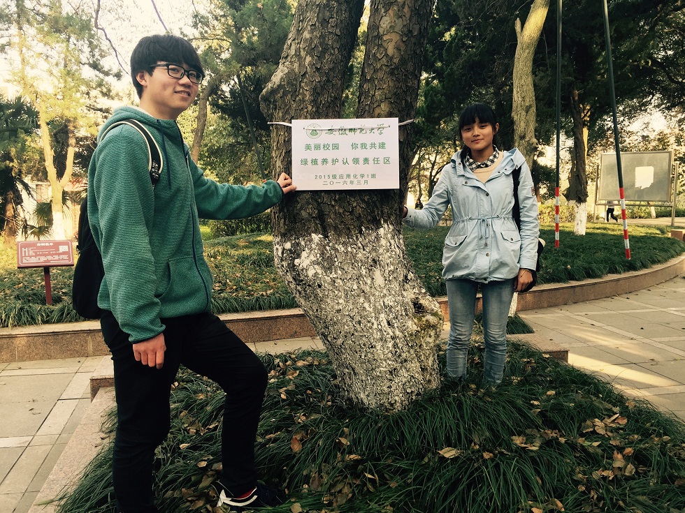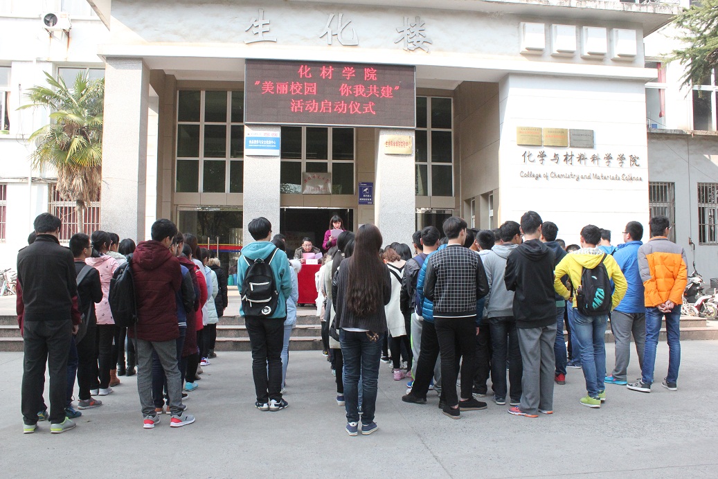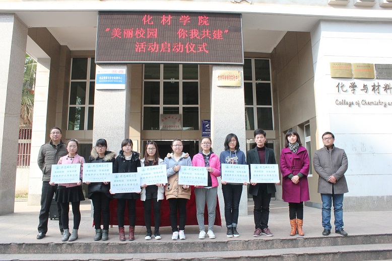 于3月16日在生化楼前举办“美丽校园 你我共建”绿植养护认领分区授牌仪式,号召广大化材学子积极投身爱绿护绿行动,共建美丽师大。