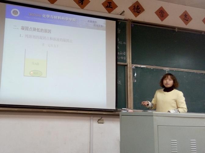 为提高青年教师的从教技能,为参加学院第八届青年教师讲课大赛作准备,2016年3月24日下午,材料化学系在生化楼2024教室举行了青年教师讲课技能辅导。材料化学系拟定由柳守杰和金莉莉两位老师代表本系参加学院的讲课大赛。柳守杰老师进行了题为“一级反应”的微课教学,金莉莉老师进行了题为“稀溶液的依数性之凝固点降低”的微课教学。材料化学系的老师们对柳守杰和金莉莉两位老师的教学进行了点评,在肯定其精彩的一面的同时,也对存在的薄弱环节提出了一些改进的意见和建议,如教学内容要进行适当的压缩和精炼,板书要进一步合理规划和设计,进一步熟悉教学内容,增加跟台下的互动等。