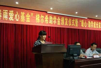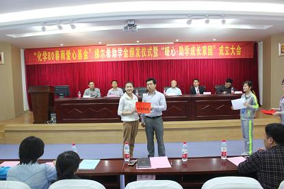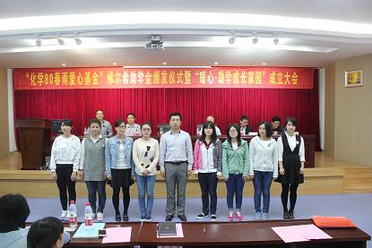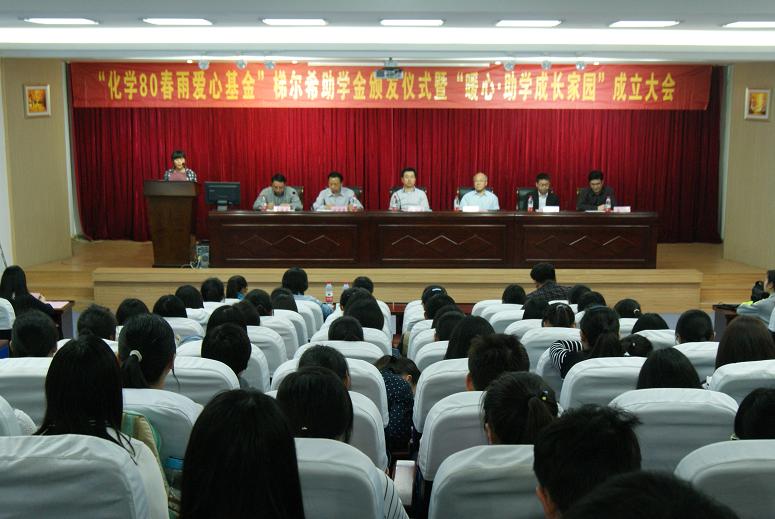 在赭山校区图书馆报告厅隆重举办"化学80春雨爱心基金"梯尔希助学金颁发仪式暨“暖心·助学成长家园”成立大会。出席大会的有梯尔希(南京)药物研发有限公司副总经理芮彬云、财务经理徐好,校教育基金会负责人傅乐义、方百盈,包子漫画