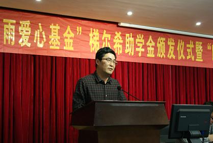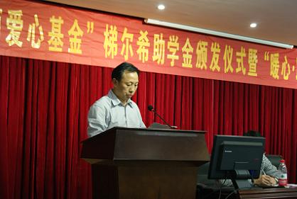 颁发仪式上,傅乐义宣读了梯尔希助学金颁发决定,并对韩冰等60名受助学生给予支持与肯定,鼓励其勤奋努力,求实创新。芮彬云代表资助人为受助学子颁发助学金并合影留念,在发言中他鼓励受助同学要自强不息,不断进取。他说:“贫困并不可怕,能够吃苦其实也是一种宝贵的精神。”他希望同学们能够接过爱心接力棒,积极奉献爱心,回报社会。14级化学专业王驰同学代表全体受助学生向化学系80级校友设立的爱心助学金表示诚挚的感谢,她表示自己在今后的学习上一定会奋发进取,心怀感恩,做爱心的传递者。