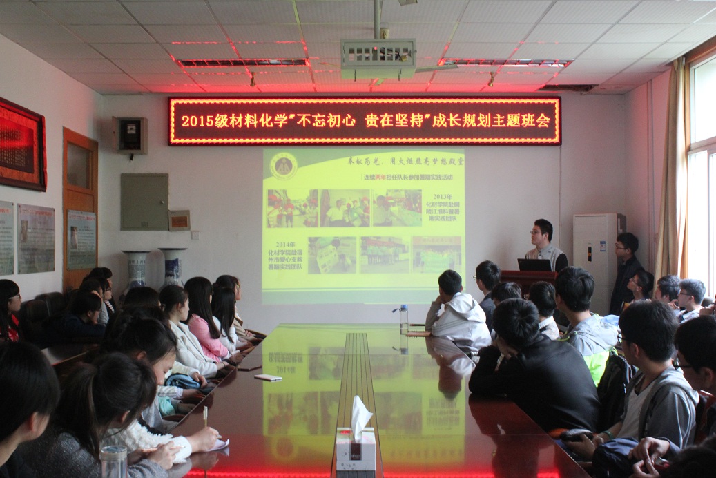 朋辈教育,引领成长。为更好的发挥师兄师姐的传帮带作用,学院组织2012级优秀毕业生成立巡讲团,在低年级班级开展“学业”、“考研”、“就业”等不同主题的“成长感悟”宣讲宣教。巡讲团中有各专业的“考研达人”、“学霸学神”、“党员先锋”和“就业牛人”,他们把自己成长经历中的宝贵经验毫无保留地传递给学弟学妹们,分享大学成长感悟,帮助他们在确立目标、制定计划和职业发展等方面理清思路,分析利弊,鼓励同学们要敢于为梦想而奋斗。“优秀学长学姐的成长故事确实令人振奋和感慨,我也要通过不断努力,用拼搏和汗水去书写我的大学生涯。”2015级材料化学专业1班团支书邓传玉在接受宣教后倍受鼓舞地说道。