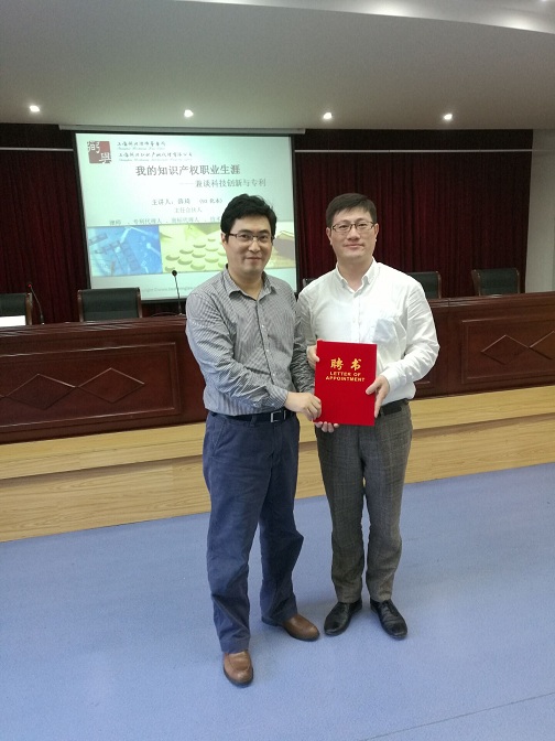 讲座开始之前,学院院长高峰为薛总颁发了“兼职教授”聘书。讲座伊始,薛总阐述了科技创新与专利的紧密关系,并介绍了专利的多个特征属性。他在谈及产品的专利开发思路与策略时指出,产品开发就好比化学领域的科学研究,要认真对待其中的每一个环节,有时候惊喜也许就隐藏在副产物之中。随后,薛总结合他“由化学到法律、由学校到社会、由员工到老板再到创业”的知识产权生涯,提出大学生找工作需要列出自己的要求,即列出强项、列出爱好、列出公司的优劣这一观点。他明确指出:人生就是不断选择的过程,但是要有选择的标准,不仅仅要考虑眼前利益,更要着重于长远打算。他还提到了组建团队的重要性,并且在团队中要学会承担、愿意分享、肯吃苦、肯吃亏、坦诚做人、坦荡做事,只有这样才能让团队更好的凝聚在一起。