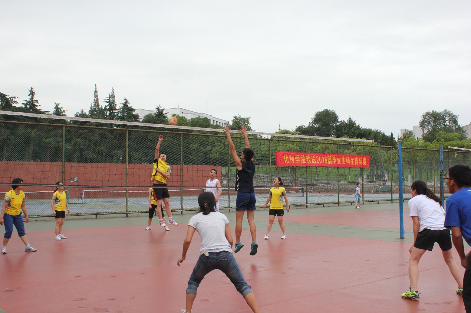 于6月26日下午在赭山校区篮球场和排球场分别举行了以“欢送毕业生”为主题的师生篮球赛和排球赛,参赛双方分别是我院教职工和2016届本科毕业班学生。学院党委书记汪俊武、院长高峰、副院长周双六和学院党委副书记余妍霞到现场和同学们一起观看了两场精彩的比赛。