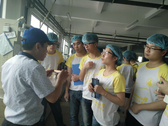 经理吕鸿宾将队员们带入了生产车间。首先,队员们先去印刷车间,印刷主要是为了静电处理,为后面的丝印和胶印做准备。为了满足客户的需求,分为胶印和丝印,丝印是最高的要求。随后队员们看了钻孔,封盖,封尾,套盖,吹气等多个车间。参观车间后,吕鸿宾带领队员们来到了会议室,召开了总结会议。经理说:“大学生毕业之后需要很多时间来适应社会,做事要脚踏实地,不要好高骛远。机遇有时比能力更加重要,抓住机遇会获得你意想不到的成功。” 最后,队长刘洋洋代表所有队员对公司这两天的招待表示由衷的感谢。