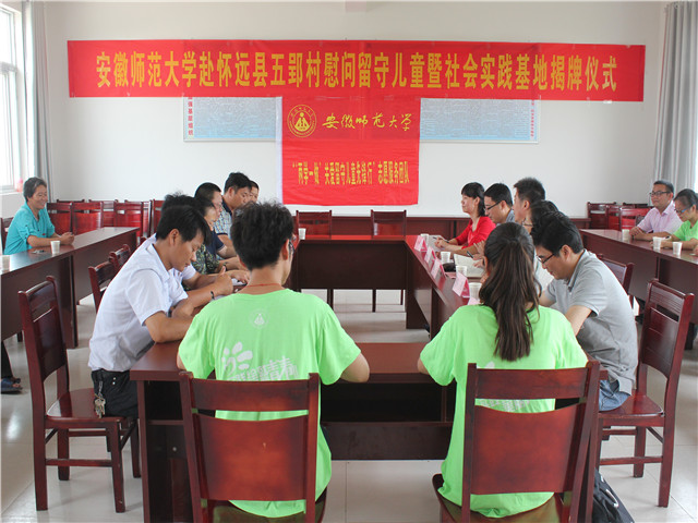 程度一行的到来受到了实践地的热烈欢迎。在五郢村的村委会议室召开了双方的交流座谈会,怀远县政府副县长陈春霞、副县长贾良清、怀远县教育局局长崔伟、古城镇镇长彭辉、五郢村”两委”、村小学负责人以及实践团队队员参加了座谈会。座谈会上,怀远县副县长陈春霞感谢包子漫画