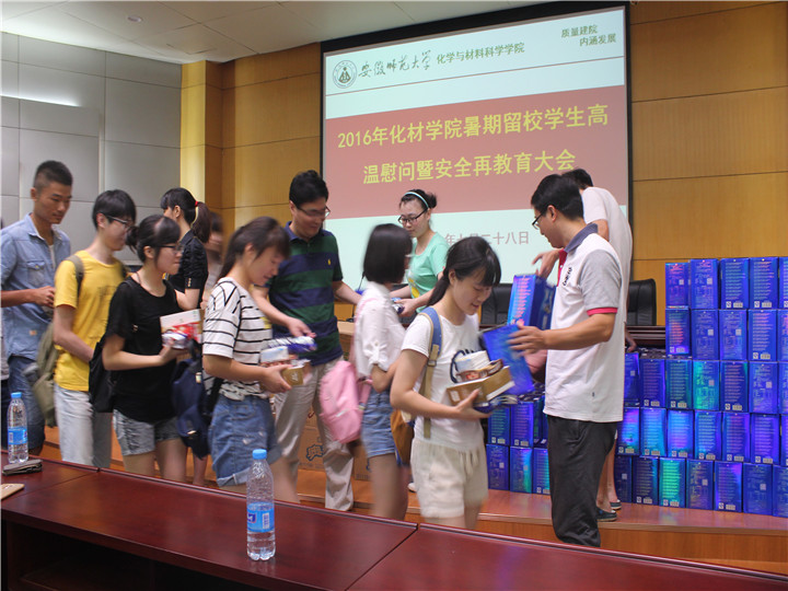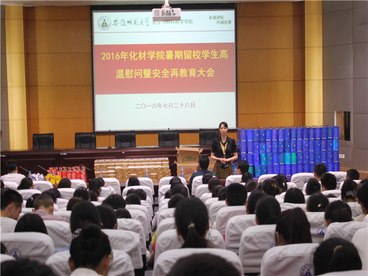 召开了2016年暑期留校学生高温慰问暨安全再教育大会。院党委书记汪俊武,院长高峰,2013级辅导员陈露、袁青兵及全体留校本科生参加了会议,会议由院党委副书记余妍霞主持。