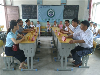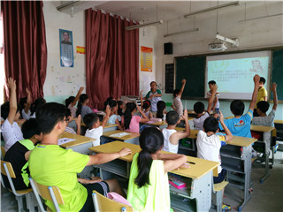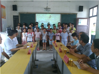 在柳畈小学,余妍霞一行亲切慰问了实践团队队员们,看望了正在开展绿色环保绘画课的志愿者和学生们,并认真听取了同学们对活动开展情况的汇报,以及在实践过程中的收获和体验。2014级材料化学专业张君良同学代表团队从宣教对象选拔、宣教课堂讲授、团队组织管理、安全保障、后勤生活等几个方面汇报了前期开展活动情况及成果,随后实践队员与领导老师们展开了真情洋溢的交流,团队成员畅谈自己内心的想法及感悟。在听取了大家的发言之后,余妍霞充分肯定了暑期实践团队的努力付出,她希望每位队员都要把自己的感悟沉淀成成果,理性思考,走向成熟,在适应社会的同时不要丢弃内心的那份纯真,将环保实践要坚持到最后。