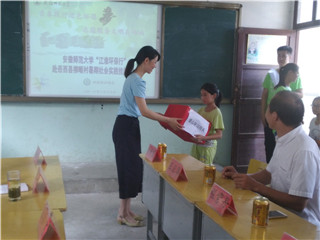 在柳畈小学成功建立大学生暑期社会实践基地。余妍霞也向小学生代表赠送了爱心图书和文具,鼓励他们好好学习,为将来的美好人生努力拼搏。期间,柳畈小学的学生还展示了环保歌曲表演。