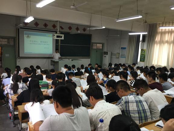 下午4时30分,全体2016级硕士研究生在生化楼2024召开了主题为:“不忘初心,继续前行”的主题班会,会上科研副院长周双六发表了讲话,介绍了我院的发展现状、各专业的基本概况,同时对2016级硕士研究生提出了殷切希望。研究生秘书赵全胜对2016级新生的到来表示热烈的欢迎,在简要回顾我院总体概况、学生组织等情况后,对接下来新生入学后的工作展开了布置。