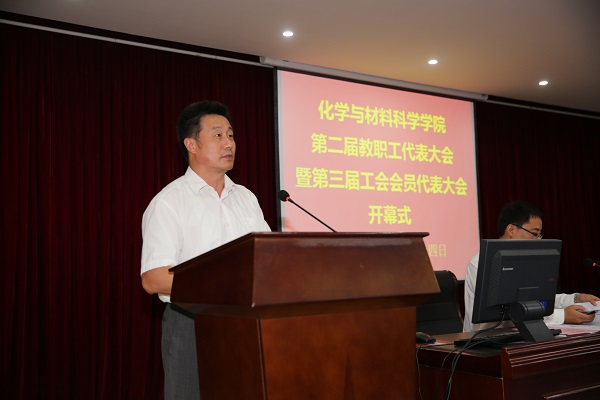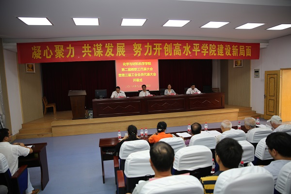 随后,召开了第一次大会。会上,高峰作了题为《凝心聚力 共谋发展 努力开创高水平学院建设新局面》的报告。在报告中,高峰院长对学院“十二五”期间的主要成绩做了总结,在肯定成绩的同时也对存在的问题进行了分析,介绍了学院“十三五”期间的工作规划。刘桂云作了题为《凝心聚力 共建幸福家园》的报告,报告中,刘桂云对过去五年工会的工作作了总结,正视了工会工作中存在的问题及不足,并明确了今后五年的工作思路。