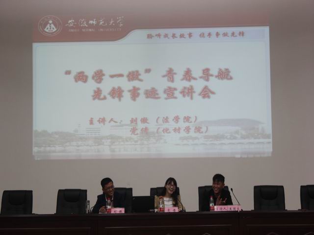 在赭山校区科技礼堂开展了以“播种梦想,护航成长”为主题的先锋事迹宣讲会。法学院刑法学专业2014级研究生刘傲、包子漫画