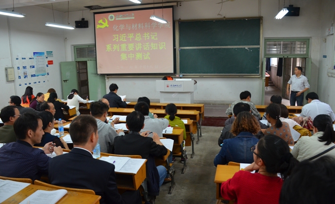 党委组织党员开展“两学一做”学习教育知识测试,来自学院各党支部270余名师生党员在生化楼2033、2034两个教室参加了现场测试,在外实习的毕业班党员参加了电子测试。