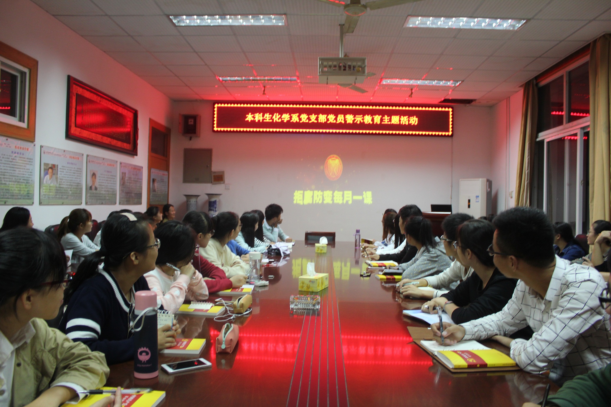 本科生化学系党支部围绕“坚守纪律底线,培养高尚情操”展开了专题讨论会议。党支部书记蒋建伟老师主持本次会议。会上,蒋老师带领我们学习了《中国共产党廉洁自律准则》以及《中国共产党纪律处分条例》,向全体党员传达了27日在北京闭幕的十八届六中全会精神。