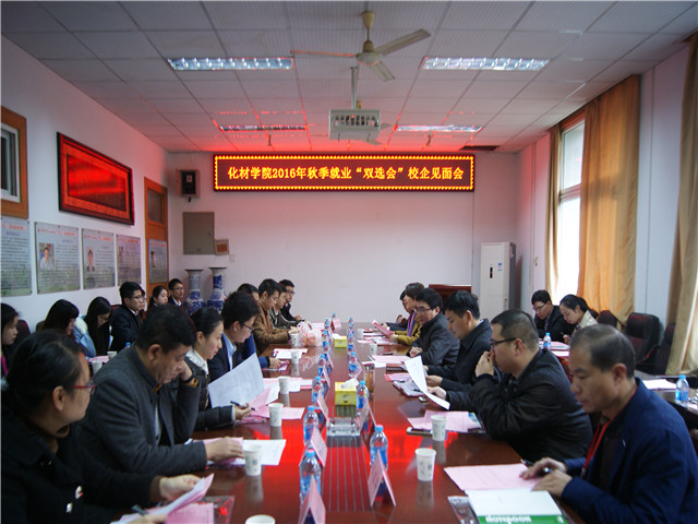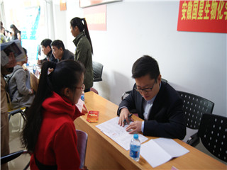 2016年秋季就业“双选会”于赭山校区就业报告厅成功举办。学院共邀请南京方生和医药科技有限公司、安徽天润化学工业股份有限公司、安徽国星生物化学有限公司等9家企业单位来学院参加本次双选会。双选会上,各企业分别从企业基本情况、招聘岗位信息、需求人才要求及未来发展方向等方面进行了详细的宣讲。