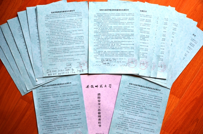 学院对全院近200个本科、科研实验室的安全责任人进行了明确,并将安全责任人相关信息张贴在每个实验室门上,同时又聘任了生化楼、科技南楼实验室兼职管理员,做到责任明确到每个人每个实验室不留遗漏。
