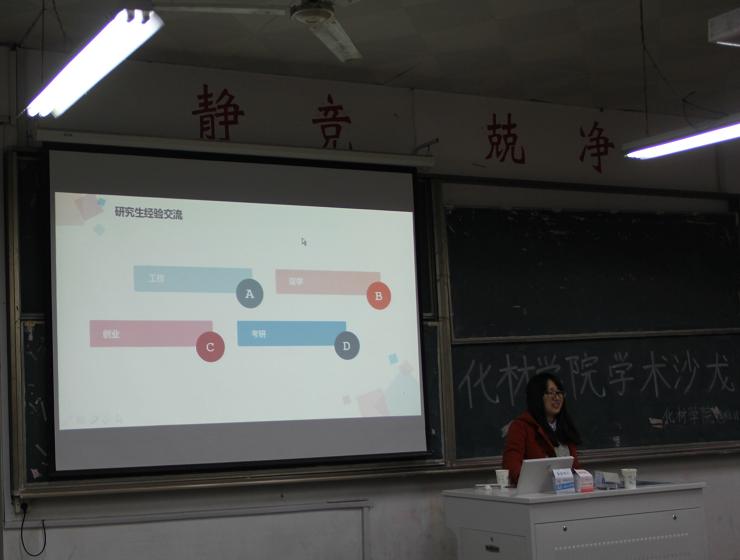 王骏首先与同学们探讨了研究生应具备的基本素质,随后与大家分享了查阅文献的方法,并介绍了他所做的一些工作。特别是他提到的关于学生与导师关系的“华氏兔子定律”给全场同学留下了深刻的印象。关文梅从学习、科研、沟通三个方面分享了她的一些经验,以其自身经历强调看文献的重要性,并且分享了她常用的一些学习网站。洪璐则是强调了新颖的实验思路的重要性,阐述了如何规划具体的实验过程和记录实验数据。一个实验成功的背后所要付出的努力是巨大的,她结合自身经历分享了如何解决实验中遇到的一些问题。最后,同学们各自就现阶段面临的问题与主讲人进行了交流。