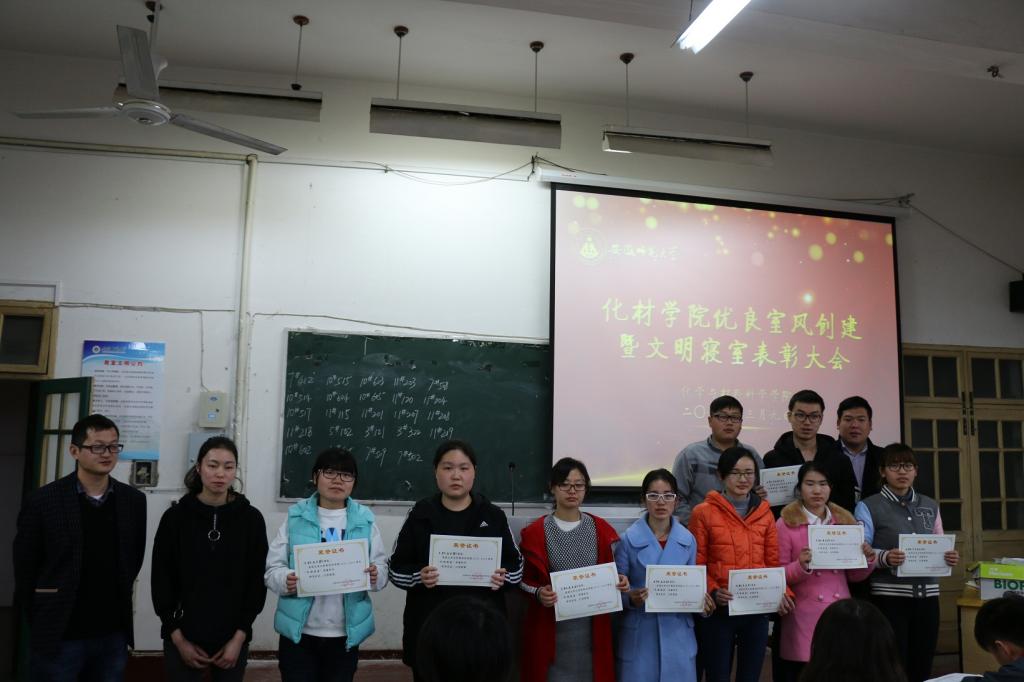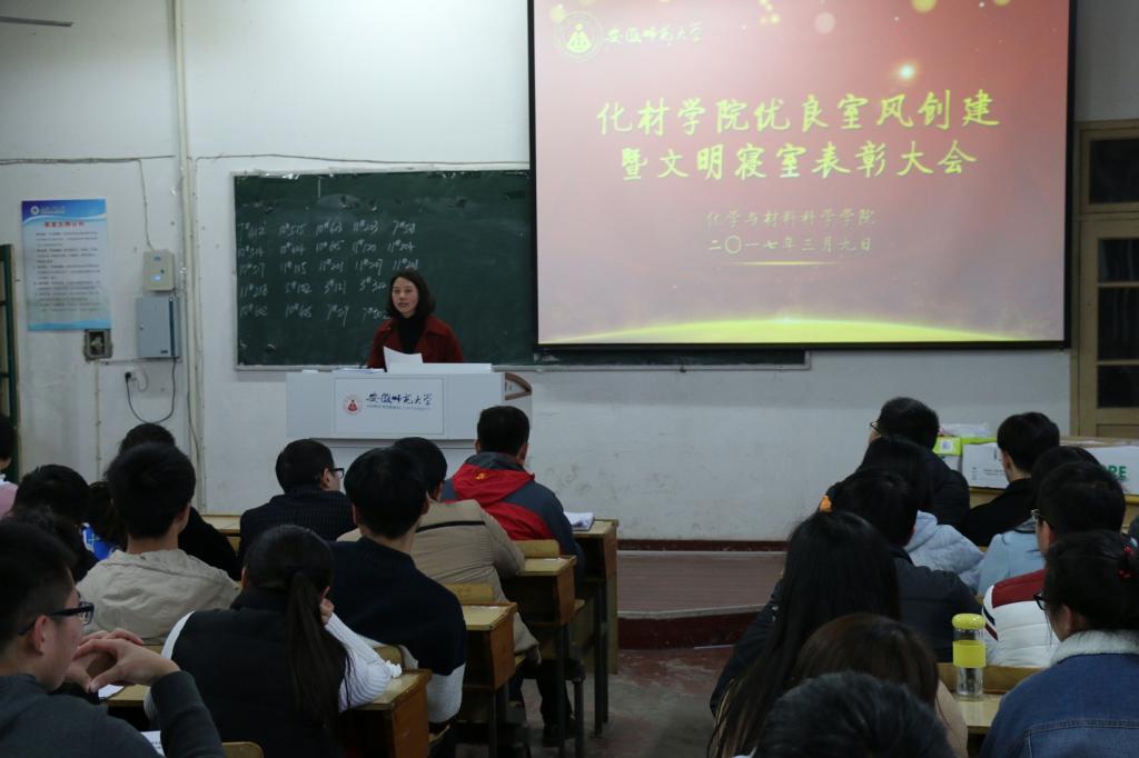 在教学楼1410教室顺利召开了优良室风创建暨文明寝室表彰大会,学院党委副书记余妍霞、全体专兼职辅导员、全院本科生学生宿舍寝室长参加会议。会议由学院团委蒋建伟主持。