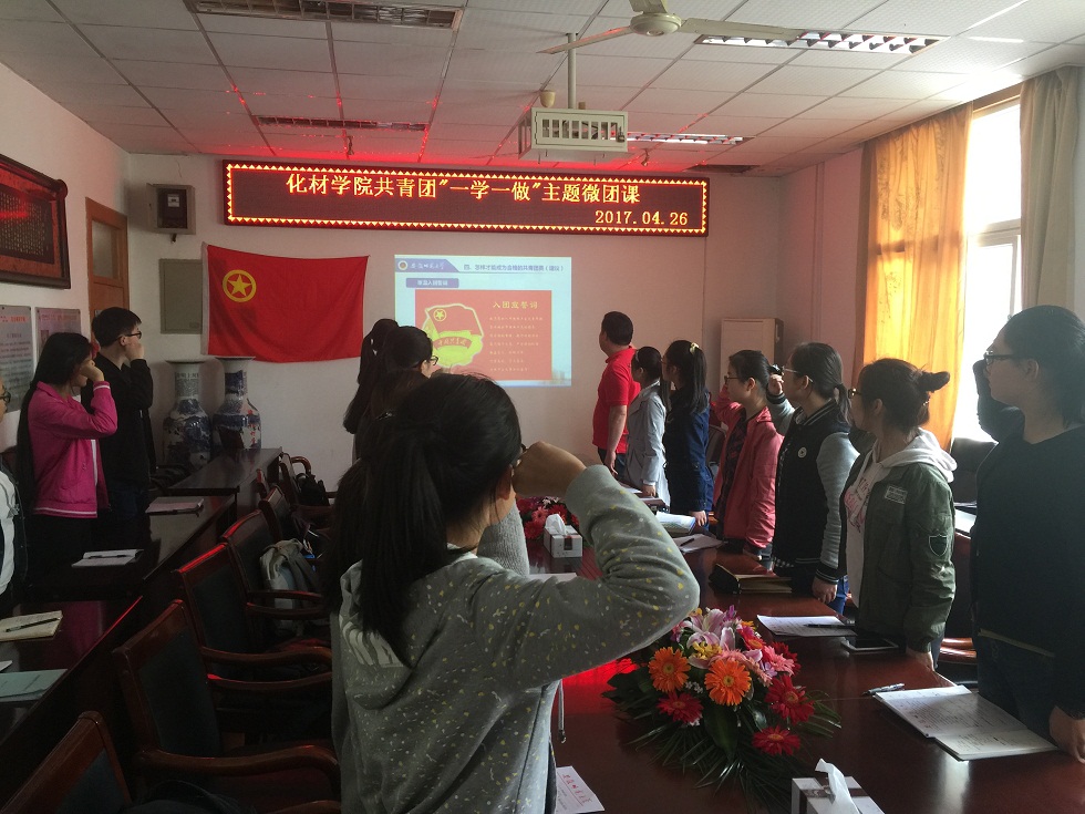 雄厚的宣誓声回荡在会议室中,本次微团课顺利结束。在蒋建伟老师认真又不失风趣幽默的讲述后,各班级团支书对认真开展“一学一做”学习教育活动有了更深一步的认识和理解。