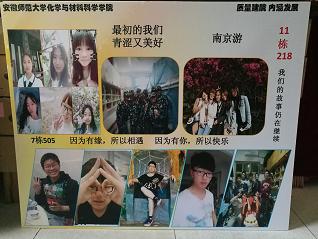 展板上满满的都是每个宿舍同学的甜美微笑,他们用微笑消除着人与人之间的隔阂,每一抹微笑都是最亮丽的风景线,它们承载着我们的希望,对生活的热爱与热情,洋溢着我们当代大学生的活力。