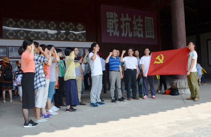 最后大家又来到了军部大会堂旧址,在旧址的大厅里全体党员老师面对主席台肃立,在党旗下重温了入党誓词,教工化学系党支部书记王广凤同志带领大家学习了《党员的权利和义务》。大家穿行在馆内砖木结构的旧宅间,走进那一间间展厅,那一张张发黄的历史照片、一件件珍贵的革命文物,一边认真地听着解说员的讲解,一边近前仔细地观看,大家无不为新四军将士那种无私奉献的精神和不怕牺牲的爱国激情所震撼。通过此次学习大家也经历了一次爱国主义的洗礼,表示要结合“两学一做”学习教育,在工作中发扬我党的优良传统和作风,为实现中华民族的伟大复兴而努力工作。