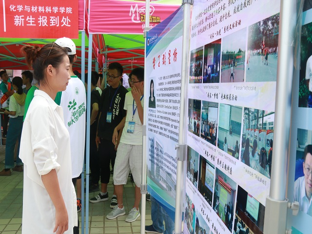 ”主题展板宣传,“优秀校友录”、“学子群星榜”、“活动风采集”三块内容的介绍,将学院杰出的科研大牛、优秀前辈成长事迹和丰富的学生活动展示给新同学,既有助于学院形象宣传,又点燃了新生的奋斗激情。