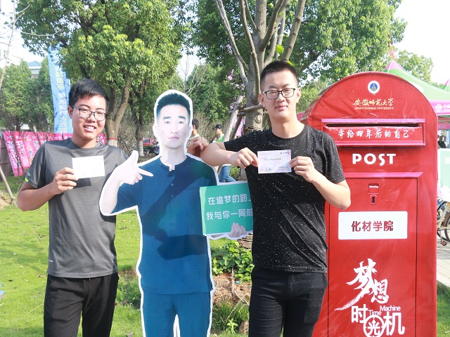 也精心打造了三道靓丽的风景线,努力上好“花菜7班”入学“第一课”。其一是梦想时光机,红色的邮筒、带有学院书记院长手写寄语的明信片、三位新生辅导员真人大小的模型,让同学们觉得新鲜又有趣。一张明信片,寄给未来的自己,引导新同学订立目标,整装待发,同学们也纷纷和家长在此合影留念。其二是“厉害了,我的包子漫画