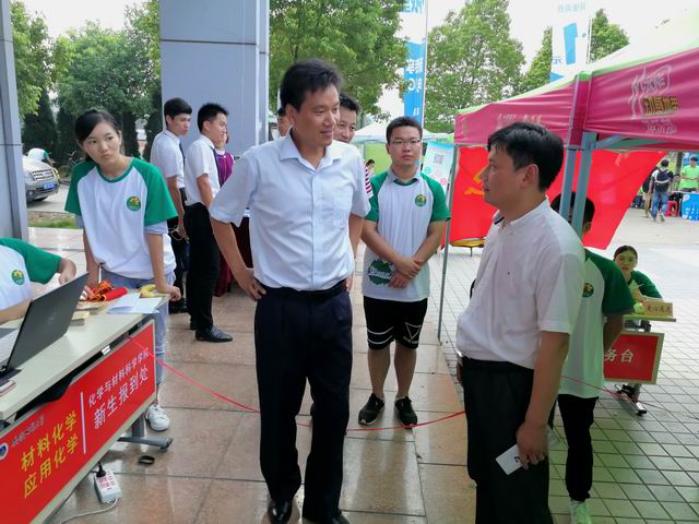 领导班子成员纷纷亲临现场,探望迎新的老师和志愿者们,并详细询问现场迎新情况,为迎新工作提出宝贵意见。