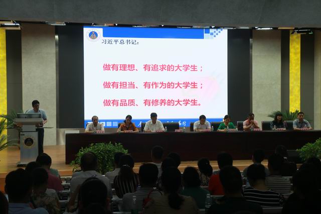 为进一步加强家校合作,共筑良好的育人环境,学院于9月9日下午3点半在化学楼礼堂举行“新生家长见面会”,学院领导班子成员及各系主任全体参与,学院党委书记汪俊武主持。会上,院长高峰向新生家长详细的介绍了学院历史、专业建设、师资力量、人才培养等情况,并引用习近平总书记的话激励新同学争做“六有”大学生。随后,党委副书记余妍霞就奖助学金、纪律要求、考研就业、安全教育等学生工作做了相关介绍。此次家长会,既让家长了解了学院的情况,也增强了对学院人才培养的信心,为后续与学院的合力育人奠定了良好的基础。