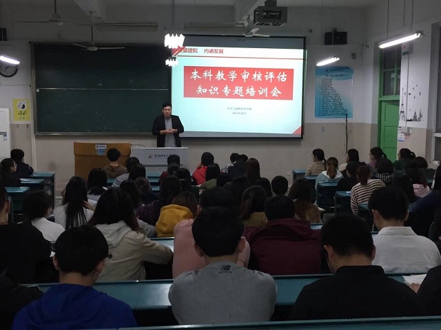 会议尹始,副院长张小俊用生动形象的语言对本科教学审核评估进行了背景介绍。他通过“什么是审核评估”、“审核评估的范围”、“审核评估的流程”和“审核评估的作用”四个方面向全体同学普及相关知识。张副院长强调,在专家进校考核环节中,专家将以学生的日常学习生活为切入点,围绕课堂、寝室、实验室等多个方面展开评估考核。考核方式包括了随机听课、召开座谈会、抽查寝室、检验专业技能等多方面、多角度的综合性考核方式。因此同学们在面对专家进校考核环节中一定要展现出师大人、化材人的精神风貌,端正态度,在学习与生活多个方面均要做到严于律己。