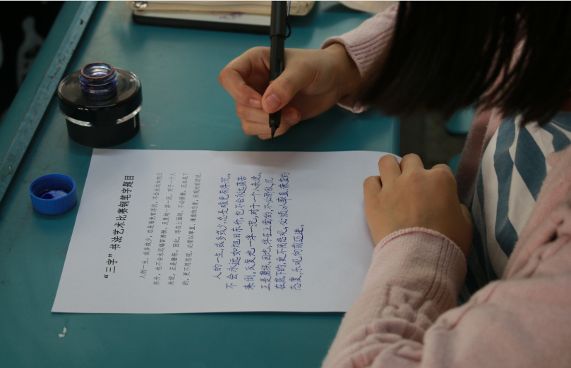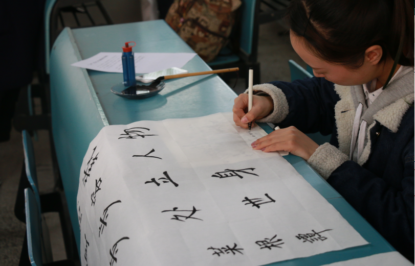“三字”书法艺术比赛在行知楼2030103顺利举行。活动以“染墨喜迎十九大,笔走豪情忆韶华”为主题,以培养学生重视书写的意识,提升人文素养为目的,旨在帮助同学们更好地传承和发展中华民族博大精深的传统文化,让同学们在笔墨中感受中华文化的魅力。比赛分为毛笔字、钢笔字、粉笔字三个部分。