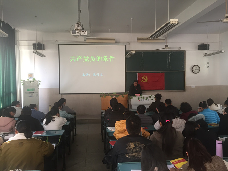 校资产管理处处长袁兴龙老师应邀给这一期入党积极分子做以“共产党员的条件”为主题的培训,培训由王雨兵老师主持。