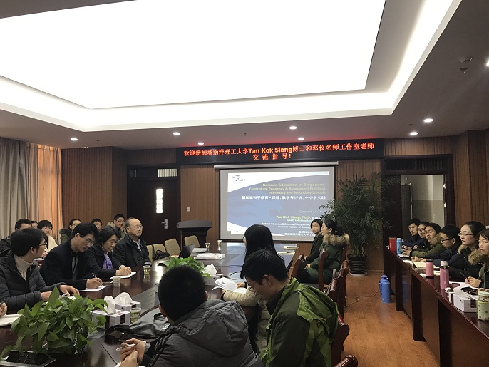 报告会结束后,Tan Kok Siang博士和芜湖市邓仪名师工作室青年教师及研究生和本科生代表进行了深度的交流讨论,交流会由化学系主任阚显文教授主持。Tan Kok Siang博士通过案例展示并分析了新加坡STEAM课程的常态化教学和案例开发过程。芜湖市十二中特级化学教师邓仪老师介绍了中国的中学化学课程设置情况,及对STEAM课程开发和实施的个人看法。交流会进一步加深了在场师生对新加坡科学教育的了解以及对我国未来中学化学教育的启示。接纳新理念,开阔新思路,迈向新征程,与国际科学教育接轨,与中学化学教师对话,此次交流会让在场的师生受益匪浅。