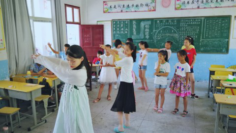 “儒道哲学,阴阳辩证。颐养性情,强身健体。”每日早读之后的课间操时间,实践团队成员别出心裁地将普通的广播体操替代为太极拳的教学。太极拳,国家非物质文化遗产,其中结合了诸多传统文化思想,是一种内外兼修、柔和、缓慢、轻灵、刚柔并济的中国传统拳术。学校的空地上,一名团队成员带领着几排孩子,将太极拳的一招一式详细耐心的讲解演示给孩子们。动作缓慢,但却仿佛有着一股强大的力量蕴含其中。当今社会,其实不管什么年纪,人们总是有着一种浮躁的感觉,无法安静下来。但是很多事情必须要安静下来才能做好,而太极拳正是一个很好的方法,通过缓慢而又柔和的动作,孩子们渐渐地找寻到了心底的那份宁静悠扬。