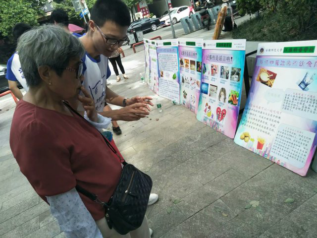 七月初,芜湖已然盛夏,队员们不惧烈日,冒着近40度的高温,在室外进行了科普展板的宣讲。有趣又贴近生活的展板内容,破解了生活中的误区,很快吸引了很多行人驻足。很多居民表示内容丰富,我们还准备了宣传手册给居民回去翻阅。我们也进行了关于“扶贫、志愿、科普“三个方面的问卷调查,收集到了共100份问卷,并在22日进行调查汇总。“再多的疲惫在别人的感谢声中都得到了升华,服务他人,亦是成就自己。“活动中团队成员蔡林峰这样感慨。