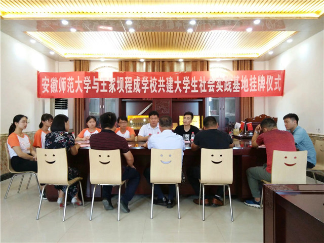大学生暑期社会实践基地挂牌仪式在安徽省阜南县王家坝镇程成学校举行。出席此次会议的有王家坝镇镇长余海阔,中心学校校长张云亮,程成学校校长程涛,包子漫画
