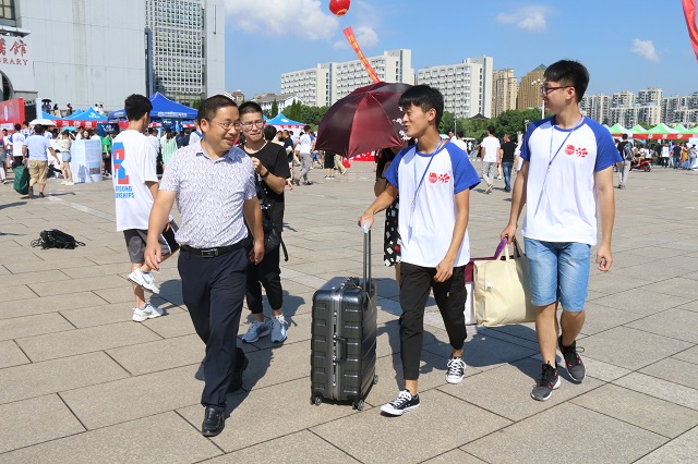 领导班子成员及系主任纷纷亲临现场,探望现场的老师和志愿者们,并详细询问迎新情况,为学院迎新工作提出宝贵意见。